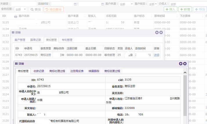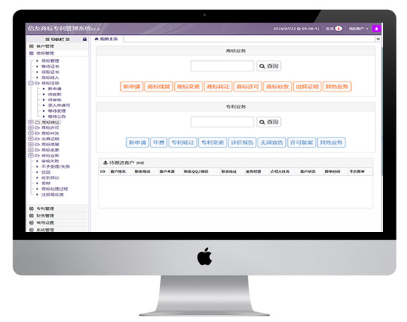 實現了從內部階段、提出申請、受理、審查、授權、年費、放棄等貫穿商標、專利、版權生命周期管理,期限、中間文件、年費、費用監(jiān)控提醒等管理功能